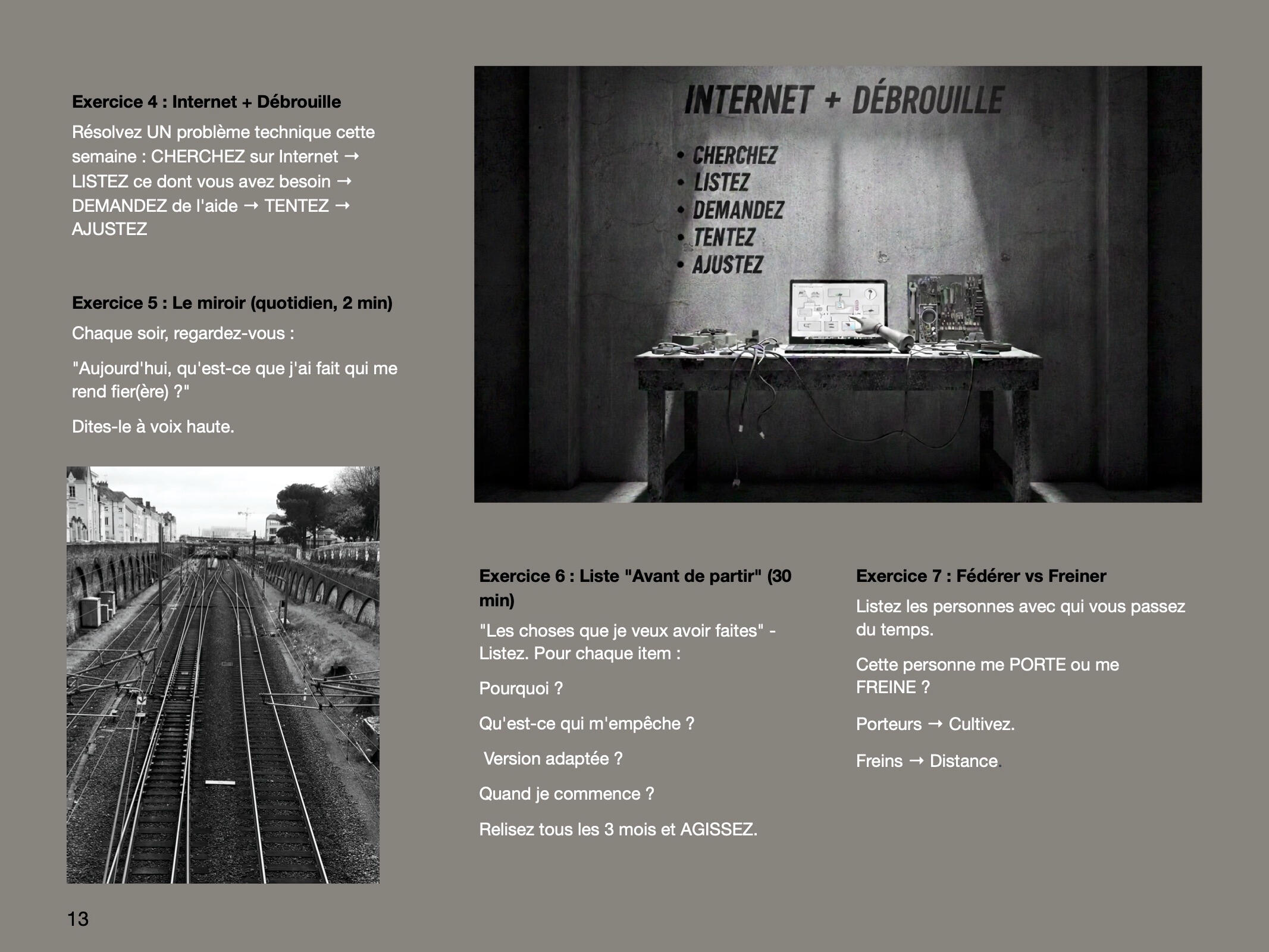 L'Excellence entre vos mains :L’Art de l’Intelligence : 6 Modules (PDF/ePUB) mis en page comme des magazines de luxe, illustrés par des photographes branchés. Apprendre n'a jamais été aussi beau.L’Immersion Mentale : 6 Mastersclass Audio (MP3) à emporter partout. Transformez vos trajets en coaching de haute volée.Le Manifeste de la Révolte : De la curiosité-antidote à la résilience invincible, forgez-vous un mental d'acier et un corps-outil qui ne vous lâche pas.